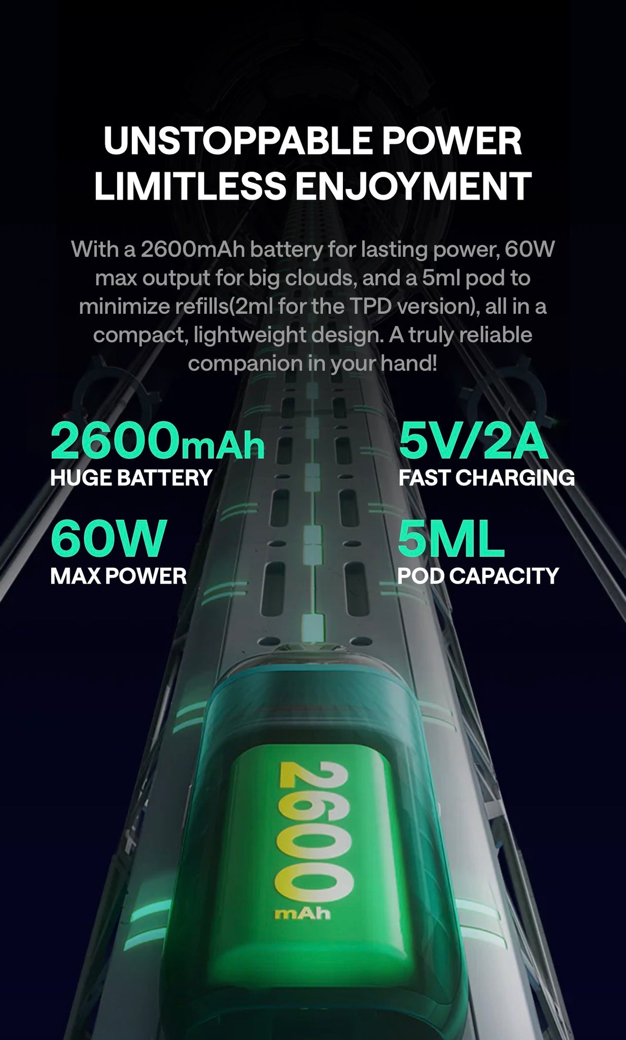 Experience direct-to-lung vaping like never before with dual activation modes. New High-precision Sensor Technology ensures the auto-draw speed matches the button activation perfectly!